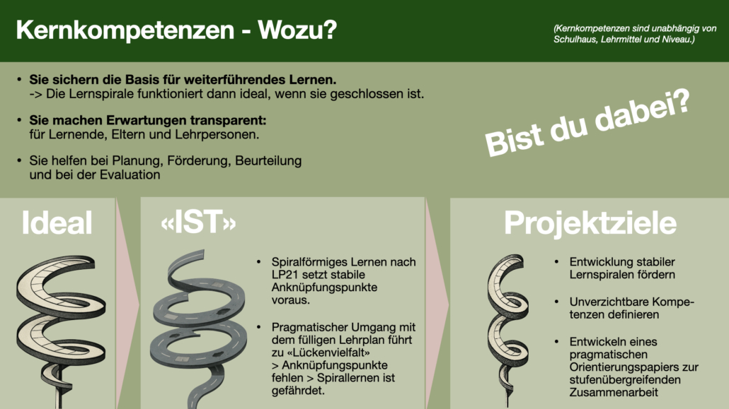 Deshalb suchen wir engagierte Lehrpersonen, die mit uns am „Projekt Kernkompetenzen“ Mitarbeiten! Bist du interessiert? – Hier geht es zum Meldeformular.